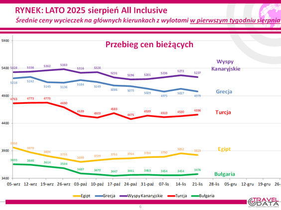 W minionym tygodniu średnia cena wycieczki z wylotem między 4 a 10 sierpnia 2025 roku spadła o 35 złotych – to wniosek Instytutu Badań Rynku Turystycznego Traveldata z najnowszego raportu*.
