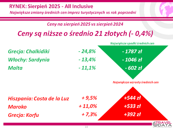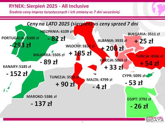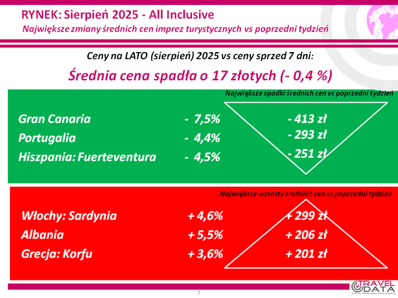 O 44 złote wzrosła w minionym tygodniu średnia cena wycieczki z wylotem między 4 a 10 sierpnia 20...