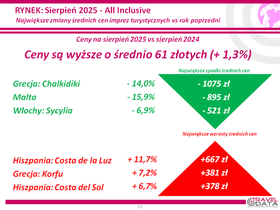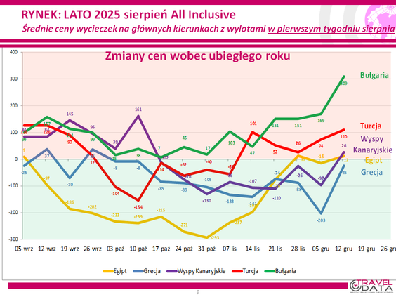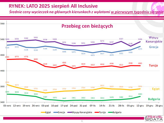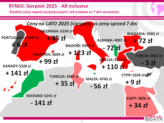 W ostatnim tygodniu średnia cena wycieczki z wylotem między 4 a 10 sierpnia 2025 roku wzrosła o 63 złote – pokazuje najnowszy raport z monitorowania cen w biurach podróży Instytutu Badań Rynku Turystycznego Traveldata*.