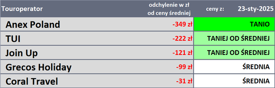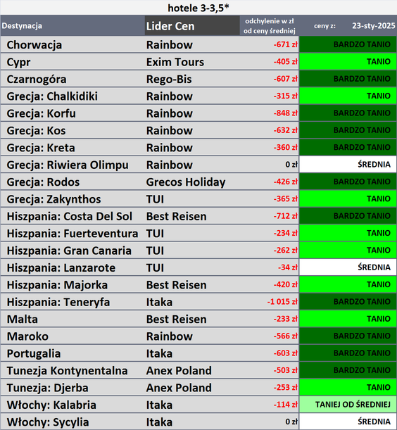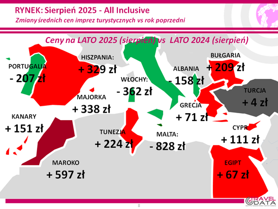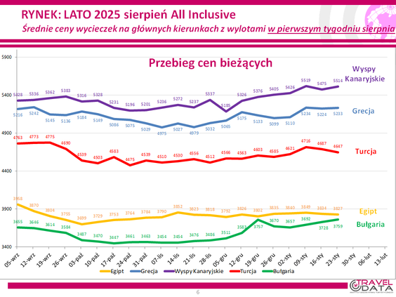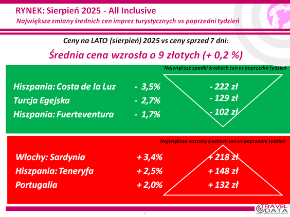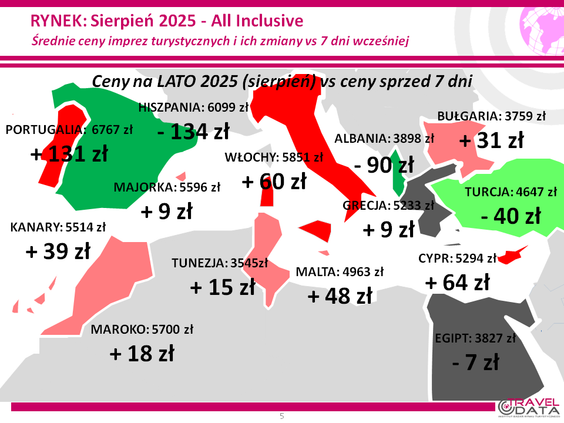 Zmiany średnich cen w ostatnim tygodniu Traveldata obrazuje grafikami.