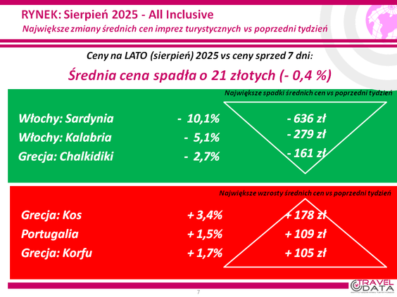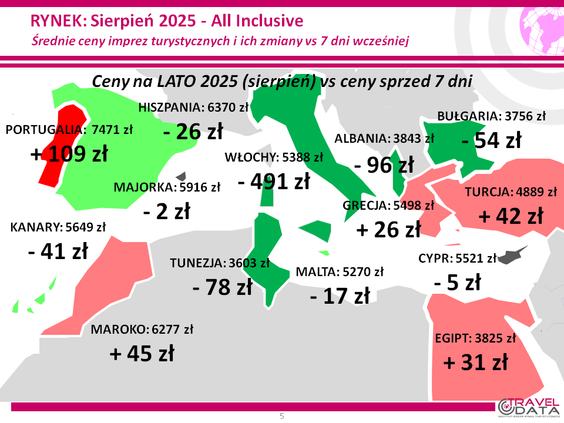 W minionym tygodniu średnia cena wycieczki z wylotem między 4 a 10 sierpnia spadła o 21 złotych – informuje Instytut Badań Rynku Turystycznego Traveldata w najnowszym raporcie z analizującym oferty biur podróży*.