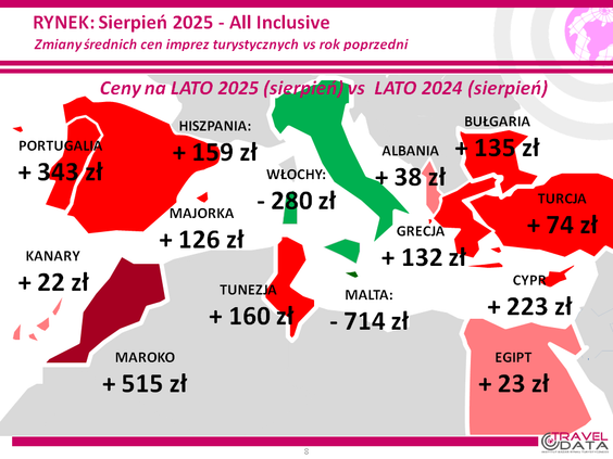 Największy wzrost średnich cen wycieczek miał z kolei miejsce w ofertach wakacji na Kos, o 178 złotych, w Portugalii, o 109 złotych, i na Korfu – o 105 złotych.