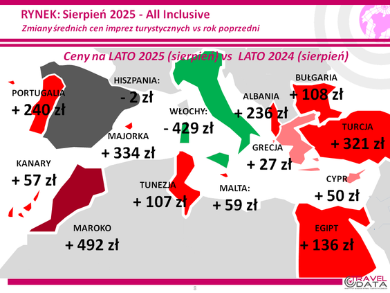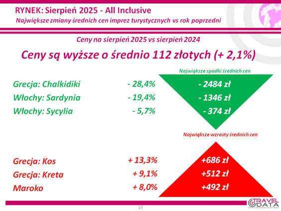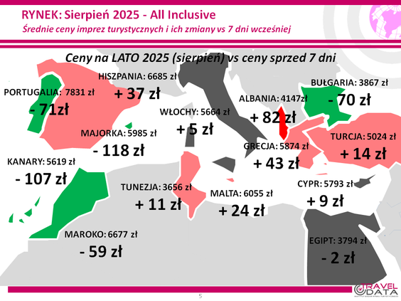 Z kolei największe podwyżki objęły wyjazdy na Kretę, o 275 złotych, na Teneryfę, o 227 złotych, i do Albanii - o 82 złote.