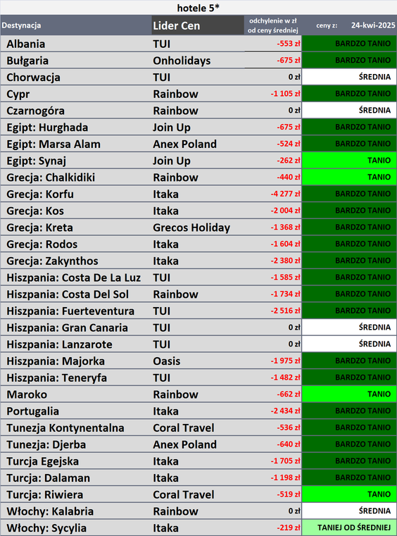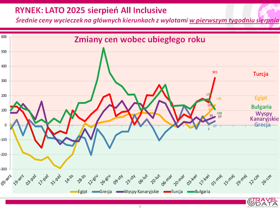 Osiem złotych to jednak tylko uśredniona zmiana, w poszczególnych kierunkach można zobaczyć dużo wyraźniejsze podwyżki lub obniżki cen. Eksperci z Traveldaty piszą, że największą zniżkę w ostatnim tygodniu odnotowali w ofertach wakacji na Lanzarote, o 360 złotych, na Gran Canarii, o 196 złotych i na Półwyspie Chalcydyckim - o 131 złotych.