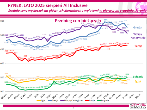 Ceny w biurach podróży stanęły - można by uznać na podstawie komunikatu o zmianie średniej ceny w...