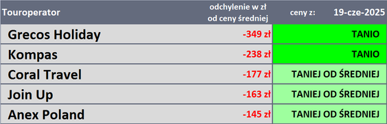 Jak czytamy w raporcie Traveldaty, największą zniżkę cen w ostatnim tygodniu odnotowała ona w ofertach wyjazdu na Costa del Sol, o 574 złote, Kos (poprzednio był tam największy wzrost cen), o 227 złotych, i Korfu – o 155 złotych.