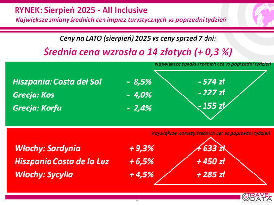Ostatni tydzień przyniósł przedłużenie zamrożenia cen. Tak należy interpretować minimalny, bo 14-złotowy, wzrost średniej ceny wycieczki w biurze podróży, jaki zanotował Instytut Badań Rynku Turystycznego Traveldata. Chodzi o wycieczki z wylotami między 4 a 10 sierpnia*.