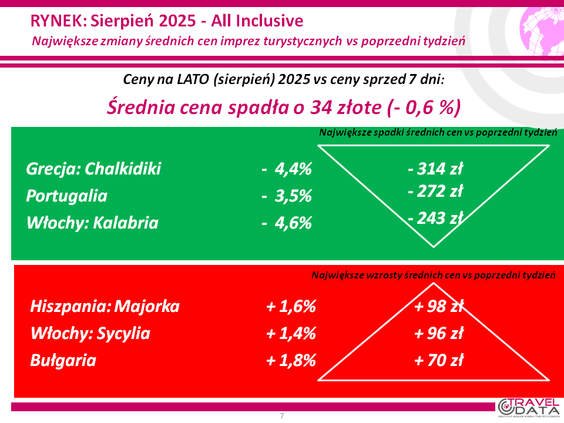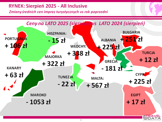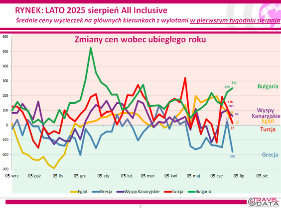 Z drugiej strony warto pamiętać, że popytowi na zagraniczne wakacje we wschodniej części basenu Morza Śródziemnego nie sprzyjały w ostatnich dniach doniesienia o ataku rakietowym Iranu na Izrael i bazy wojskowe Stanów Zjednoczonych w Katarze. Chociaż czołowe kierunki turystyczne były niezagrożone (MSZ nie zaostrzał swoich zwykłych komunikatów), niektórzy turyści woleli się wstrzymać z rezerwowaniem podróży. Prawdopodobnie teraz, kiedy strony konfliktu zgodziły się na zawieszenie broni, klienci wrócą do biur podróży.
