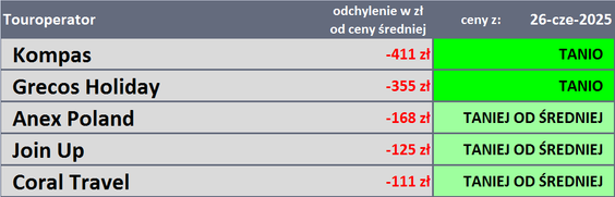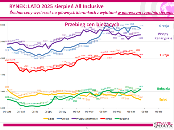 Trudno w tym kontekście ostatnią zmianę interpretować jako szczególną. Ale na progu wakacji szkolnych taka obniżka (o 34 złote) – w połączeniu z danymi dotyczącymi poszczególnych kierunków (patrz niżej) – może zapowiadać nadejście okresu, w którym wyjazdy z biurami podróży mogą osiągać ceny okazyjne. Szczególnie, jeśli chodzi o dwa popularne kierunki, jak Egipt i Turcja.