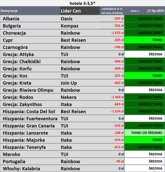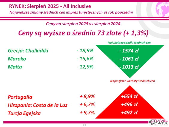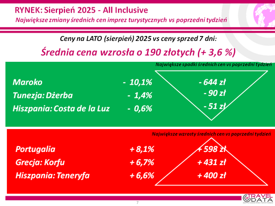 Były też zniżki, w tych najlepsze było Maroko – potaniało o 644 złote. Dużo mniejsze spadki cen notowały Dżerba i Costa de la Luz – o 90 i 51 złotych.