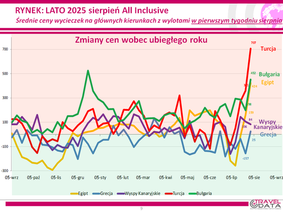 Ta uwaga przypomina, że sezon wakacyjny osiągnął właśnie półmetek, a terminy dzielące wyjeżdżających od ich wylotu na zagraniczny urlop mocno się skróciły, jeśli planują wypoczynek jeszcze w te wakacje. To niewątpliwie wpłynęło na zmiany cen, tym bardziej, że chętnych nie brakuje, a to za sprawą kapryśnej pogody i nieadekwatnych do niej cen wypoczynku w kraju.