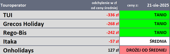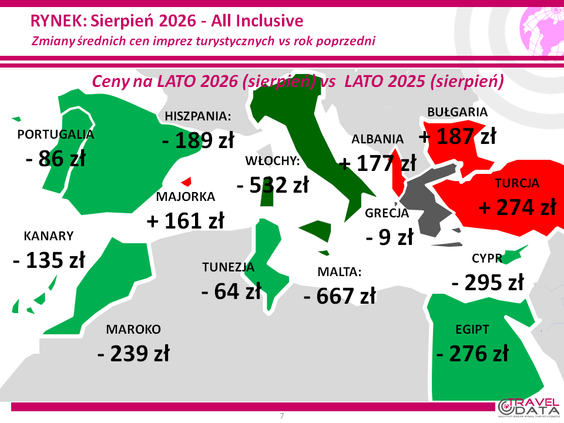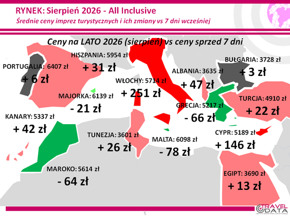 Zmiana jest symboliczna, a przypomnijmy, co Traveldata pisała tydzień wcześniej – że biorąc pod uwagę, że ceny wyjazdów oferowane na 2026 rok nie odbiegają od cen z zeszłego roku, a przy tym wystarczy wpłacić na początek bardzo niską zaliczkę (w zależności od biura podróży 5-10 procent), by zarezerwować sobie wyjazd, jest to bardzo korzystna inwestycja. Lepsza niż lokata w banku lub średnia z inwestycji w akcje przedsiębiorstw obecnych na warszawskiej Giełdzie Papierów Wartościowych.