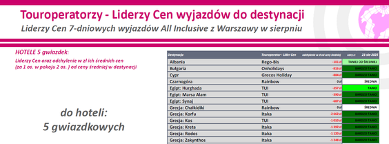 „W mijającym już sezonie ceny rezerwacji imprez dokonywanych w lipcu i sierpniu 2024 kształtowały się na poziomie około 4900 złotych. Takie same wycieczki po 10 miesiącach biura oferowały już za średnio blisko 5600 zł, czyli około 14 procent drożej.