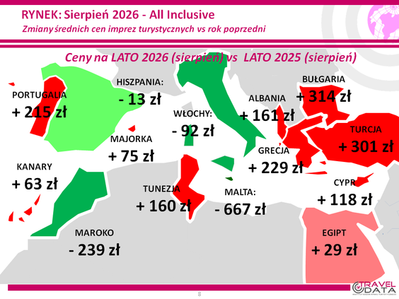 - Jakie zmiany w cenach zanotowano na wielu popularnych kierunkach wyjazdów w porównaniu z zeszłym rokiem?
