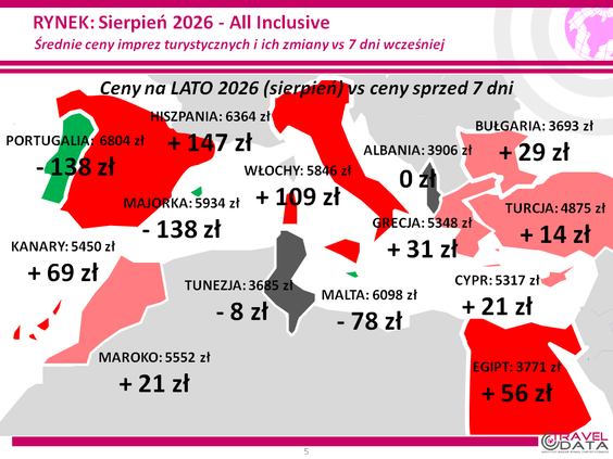 - Jakie są średnie ceny wycieczek na lato 2026 i które destynacje osiągnęły rekordowe ceny?