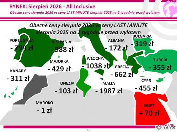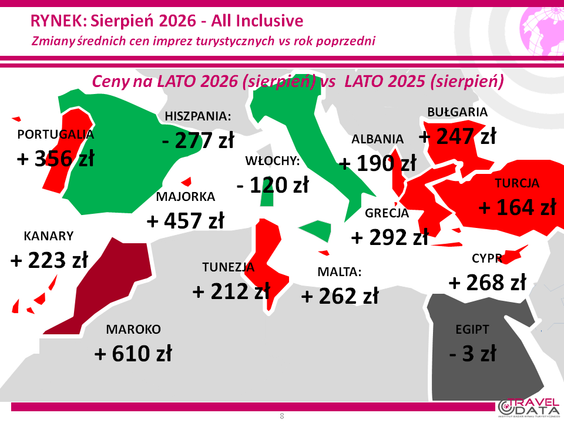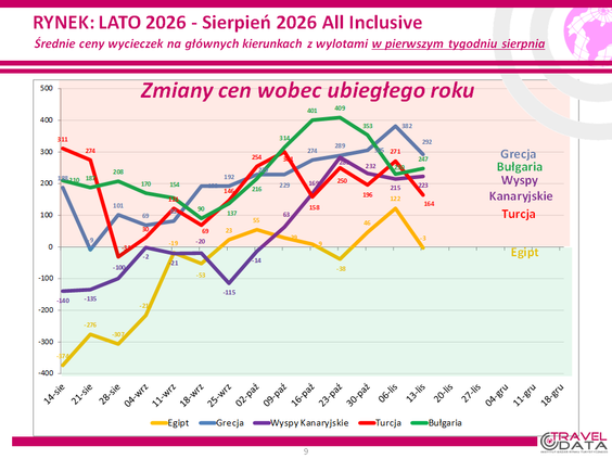 - Jakie zmiany w cenach wycieczek odnotowano w ostatnim czasie w różnych kierunkach turystycznych.