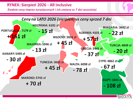 Ostatni tydzień przyniósł podwyżkę cen wyjazdów do wszystkich pięciu ulubionych kierunków wakacyj...