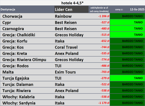 - Które biura podróży oferują najkorzystniejsze cenowo czterogwiazdkowe hotele?