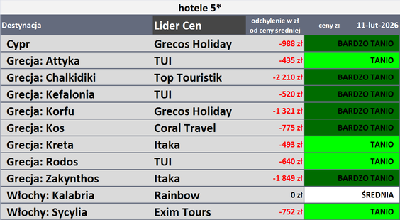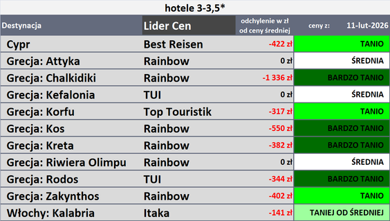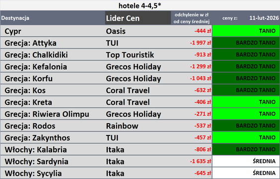 Tym razem autorzy pokazują „liderów cen” wyjazdów do hoteli w popularnych miejscach turystycznych krajów basenu Morza Śródziemnego o kategorii trzech, czterech i pięciu gwiazdek w sierpniu 2026 roku.