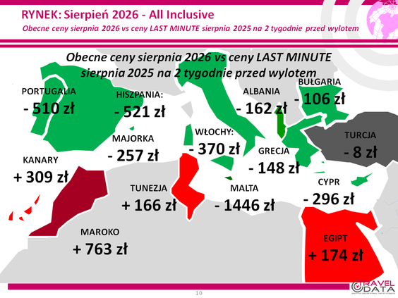Ostatni tydzień był kolejnym, w którym rosły ceny wakacyjnych wyjazdów z biurami podróży. Jeśli podliczyć ruchy cen w górę, to zwyżka wyniosła już...