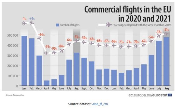 Średnia dla kontynentu to minus 31 procent – to najniższa ujemna wartość od początku tego roku. Najgorzej było w lutym, kiedy spadek wyniósł 73 procent. Później sytuacja zaczęła się poprawiać, w maju – to właśnie wtedy kierunki turystyczne zaczęły otwierać się na gości z zagranicy - było to już „tylko” minus 67 procent, w czerwcu minus 54 procent, w lipcu minus 37 procent, a w sierpniu minus 31 procent.