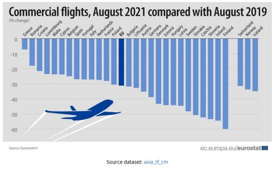 Grecja, Rumunia i Chorwacja – te trzy kraje zanotowały w sierpniu tego roku najniższe spadki w liczbie lotów komercyjnych w porównaniu z tym samym okresem 2019 roku - wynika z analizy Eurostatu.