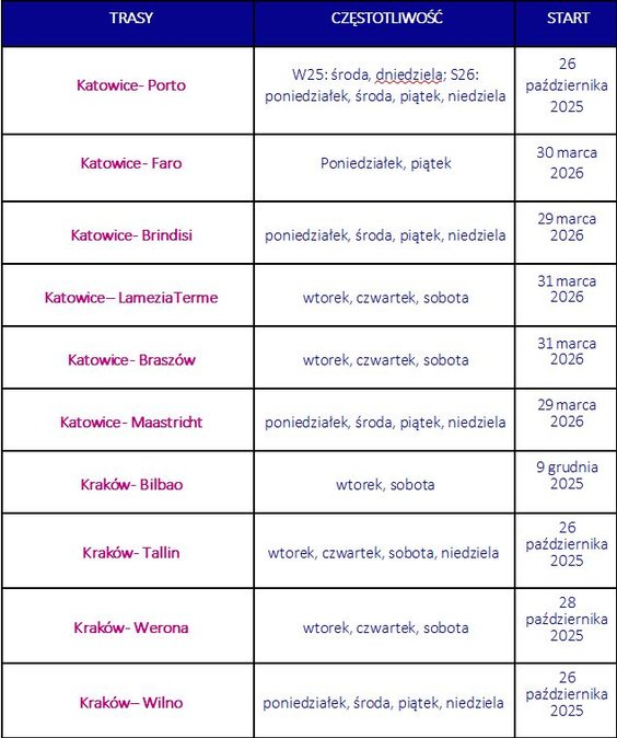 Samoloty do Wilna będą kursować w poniedziałki, środy, piątki i niedziele. Do Tallina we wtorki, we czwartki, soboty i niedziele. Z kolei do Werony we wtorki, we czwartki i w soboty, a do Bilbao we wtorki i soboty.