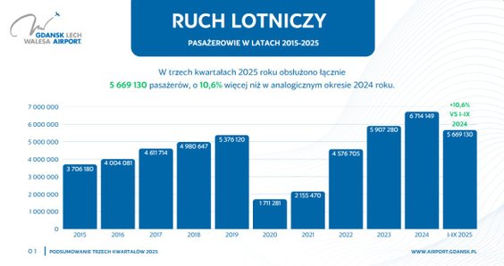 – Rośniemy 10 procent w skali roku, czyli realizujemy to, co sobie zaplanowaliśmy – mówi cytowany w komunikacie prezes Portu Lotniczego Gdańsk Tomasz Kloskowski. – Przewiduję, że w skali całego roku obsłużymy w Gdańsku 7,3 miliona pasażerów.