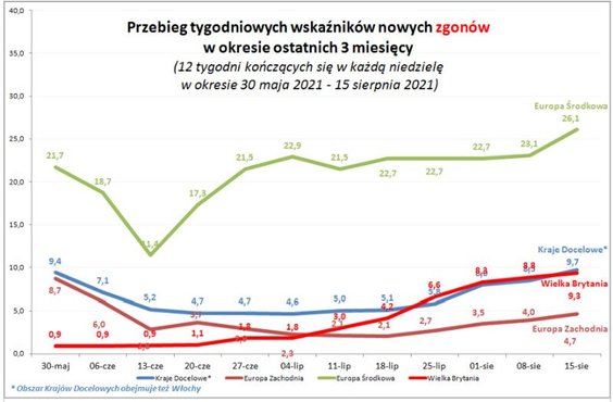 Polskie władze nie kwapią się poinformować Polaków, jak korzystna jest w naszym kraju sytuacja epidemiczna, za to regularnie i chyba przesadnie eksponują tzw. czwartą falę epidemii. Prawdopodobnie przyczyną jest chęć skłonienia niezaszczepionych jeszcze Polaków do przyjęcia preparatu, tempo szczepień w naszym kraju wyraźnie bowiem słabnie, a stopień zaszczepienia pełną dawką społeczeństwa na tle innych krajów Unii Europejskiej staje się coraz niższy – takim wnioskiem prezes Instytutu Badań Rynku Turystycznego Traveldata Andrzej Betlej zaczyna cotygodniowe omówienie sytuacji epidemicznej, najważniejszego czynnika ograniczającego dzisiaj rozwój turystyki, w wybranych krajach.