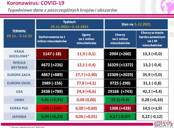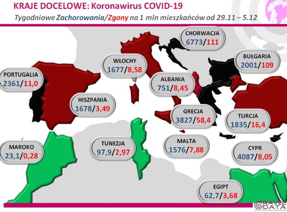 Niższy niż w Polsce wskaźnik zakażeń występuje już w 13 krajach Unii, a dodatkowo legitymuje się nim jeszcze 5 krajów docelowych, czyli Turcja, Egipt, Maroko, Tunezja i Albania. Obecnie w Polsce stał się on jednak niższy (ponad 1,1-krotnie) niż w grupie zachodnioeuropejskich krajów źródłowych jako całości, w których znaczny wzrost nowych zachorowań odnotowano zwłaszcza we Francji i w Belgii.