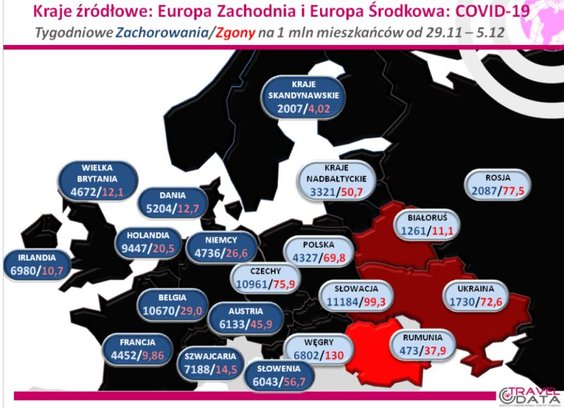 W ciągu tygodnia wskaźnik liczby zakażeń w zachodnioeuropejskich krajach źródłowych odnotował znaczny wzrost z 3978 do 4867, czyli o 22,3 procent.