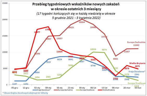 Teraz zagrożenie epidemiczne spada, czemu dodatkowo sprzyja okres wiosenno-letni. Skala sygnalizowanego przez wielu wirusologów i epidemiologów ryzyka wzrostu zachorowań i zgonów wywołanego nowym podwariantem koronawirusa, zwanego Omikron BA.2 wydaje się mniejsza od większości oczekiwań – pisze na wstępie do cotygodniowej analizy wydarzeń mających największy wpływ na turystykę przyjazdową prezes Instytutu Badań Rynku Turystycznego Traveldata Andrzej Betlej.