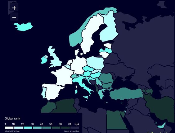 W pierwszej dziesiątce najatrakcyjniejszych dla cyfrowych nomadów uplasowały się zgodnie z GRWI Niemcy (0,824 punktu w ogólnej klasyfikacji), a za nimi Dania (0,816), Stany Zjednoczone (0,809), Hiszpania (0,796), Litwa (0,974), Holandia (0,791), Szwecja (0,788), Estonia (0,784), Singapur (0,782) i Francja (0,778).