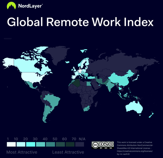 Na tej podstawie stworzyli Globalny Indeks Pracy Zdalnej (Global Remote Work Index, GRWI). „Indeks pomaga określić, gdzie należy podróżować i pracować” - piszą. Udało im się ocenić 66 krajów świata. Wielu nie wciągnęli więc do swojego rankingu (nia ma w nim np. Rosji czy Tunezji).