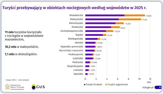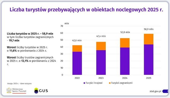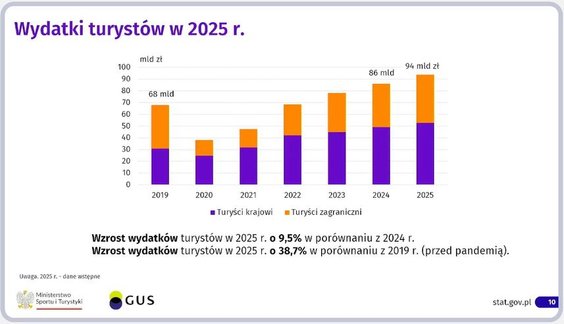 Główny Urząd Statystyczny i Ministerstwo Sportu i Turystyki ogłosiły w piątek, 6 lutego, wyniki, jakie uzyskała polska gospodarka turystyczna w zeszłym roku. Pretekstem była formalna inauguracja prac Obserwatorium Turystycznego, jakie od tego roku działa w strukturze GUS. W piątek podczas wspólnej konferencji prasowej wiceminister sportu i turystyki Ireneusz Raś i prezes GUS Marek Cierpiał-Wolan mówili, jak wyobrażają sobie prace nowej komórki.