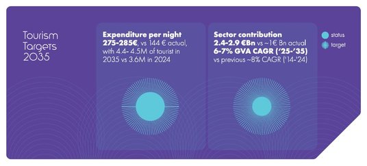 Strategia zakłada wprawdzie wzrost liczby turystów do około 4,5 miliona do 2035 roku, ale jednocześnie przewiduje zwiększenie średnich dziennych wydatków z około 144 euro w 2024 roku (153 euro w 2025) do 275–285 euro do 2035 roku. Całkowite wydatki turystów mają wzrosnąć z 3,9 miliarda w 2025 roku do 6,8–7,2 miliarda euro do 2035 roku.