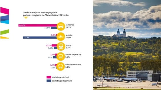 Na rosnące wydatki turystów wpływa również lepsza dostępność komunikacyjna Małopolski. Większość polskich odwiedzających dotarła wprawdzie do regionu samochodem (84,2 procent), ale turyści zagraniczni przybywali głównie samolotami (74,2 procent). Lądowali w Porcie Lotniczym im. Jana Pawła II w podkrakowskich Balicach, który w 2025 roku obsłużył rekordową liczbę 13,25 miliona pasażerów – o 19,6 procent więcej niż rok wcześniej.