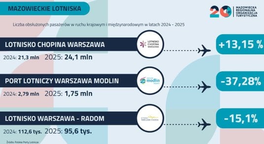 – Rekordowe wyniki Lotniska Chopina pokazują, że Mazowsze staje się jednym z najważniejszych węzłów komunikacyjnych w tej części Europy. Nie jest to tylko kwestia liczby pasażerów, ale przede wszystkim rosnącej dostępności regionu dla turystów z rynków zagranicznych. Dobra siatka połączeń przekłada się bezpośrednio na decyzje podróżnych i wzrost ruchu turystycznego, który obserwujemy w całym województwie – wskazuje wiceprezes MROT Jarosław Jóźwiak.