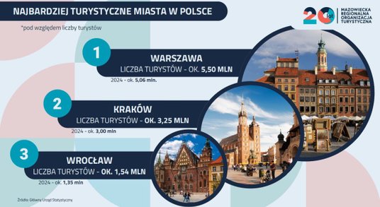 Dane pokazują, że Warszawa była też najliczniej odwiedzanym miastem w Polsce (5,5 miliona turystów), wyprzedzając Kraków (3,2 miliona) i Wrocław (1,5 miliona).