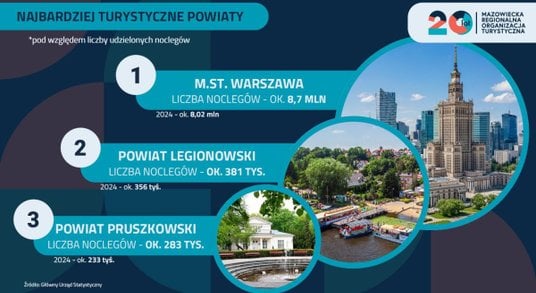 Mazowsze pozostaje województwem dynamicznym turystycznie – z rozbudowaną bazą noclegową i rosnącym udziałem gości zagranicznych – wynika z danych U...