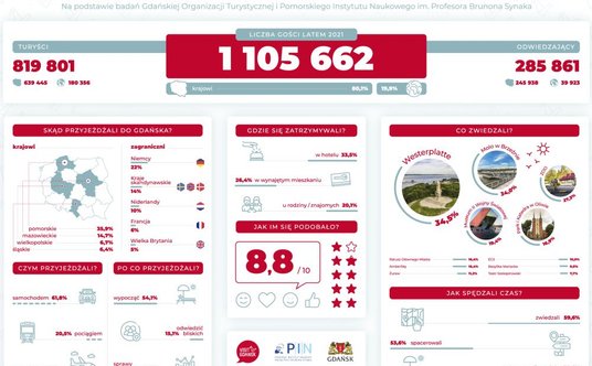 Wśród przyjezdnych dominowali turyści krajowi, było ich 639 tysięcy, o 39 procent więcej niż w roku 2019. Osobną kategorię – podaje Gdańska Organizacja Turystyczna - stanowili krajowi „odwiedzający” i tych było 246 tysięcy, o 12 procent więcej. Razem więc Polacy to ponad 80 procent przyjezdnych.