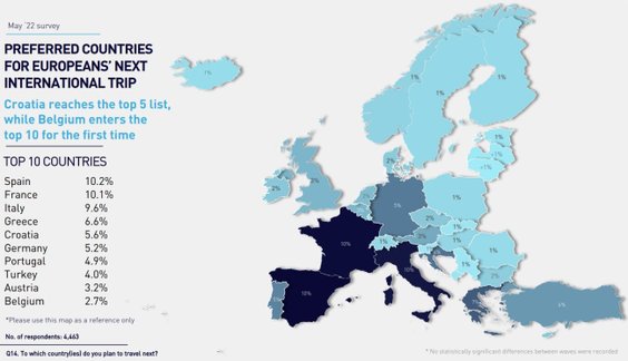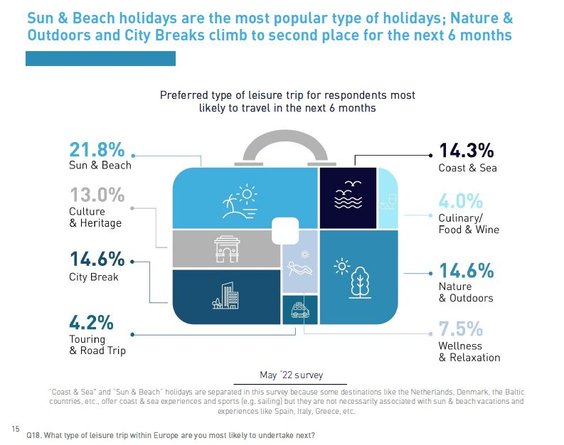 Okazało się, że mieszkańcy kontynentu mają dużą potrzebę wyjechania na wakacje. 73 procent z nich planuje podjąć podróż między czerwcem a listopadem. Zainteresowanie odwiedzaniem innych europejskich krajów zadeklarowało 58 procent ankietowanych i było to o 7 procent więcej niż rok wcześniej. 31,4 procent osób planuje wakacje we własnym kraju, a 8,9 procent wskazuje wyjazd poza kontynent.