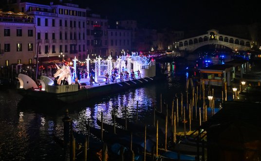 Pływająca estrada pokonała odległość od dworca kolejowego Santa Lucia do placu Świętego Marka, a miasto wypełnili mieszkańcy i przyjezdni poprzebierani w stroje z XVIII wieku i maski.