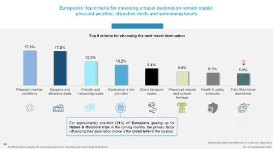Wśród nacji najbardziej skłonnych do podróżowania na czwartym miejscu znaleźli się Polacy (74,2 procent), notując jednocześnie pod tym względem największy spadek optymizmu w porównaniu z ubiegłym rokiem (o 13 procent). Wyprzedzili ich Francuzi (80 procent, wzrost o 7 procent), Belgowie (79,1 procent, wzrost o 6 procent) i Brytyjczycy (74,9 procent, wzrost o 7 procent). Pierwszą piątkę zamykają Holendrzy (73,4 procent, spadek o 4 procent).