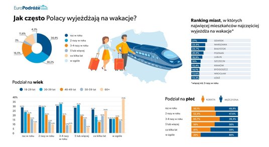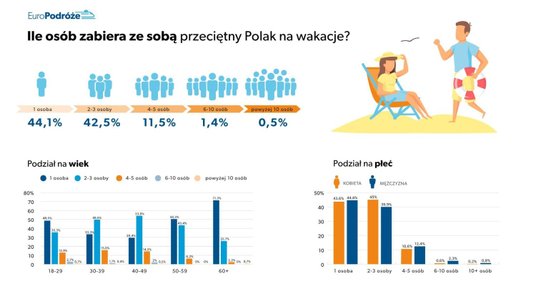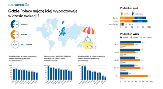 Wakacje w Europie wybiera 50,5 procent kobiet i 40,3 procent mężczyzn, natomiast wypoczywać w Polsce woli 52,8 procent mężczyzn i 43,5 procent kobiet.