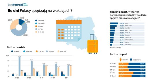 Choć podróże poza Europę stanowią najmniejszy odsetek wakacyjnych wyjazdów, są one najczęściej wybierane przez mieszkańców miast, które mają łatwy dostęp do połączeń międzykontynentalnych. Najwyższy odsetek takich odpowiedzi zanotowano w Warszawie (9,8 procent) i Szczecinie (9,3 procent).