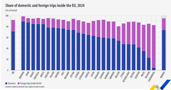 Na tle Europy Polacy plasują się w grupie krajów, w której dominują podróże krajowe – około 75–80 procent wszystkich wyjazdów. To wynik powyżej średniej unijnej, wskazujący na silne przywiązanie do krajowej oferty turystycznej i rosnącej atrakcyjności Polski.