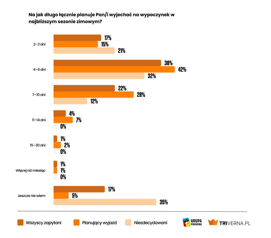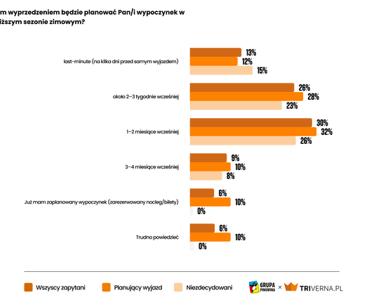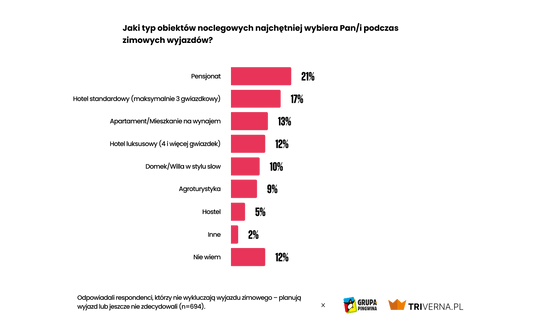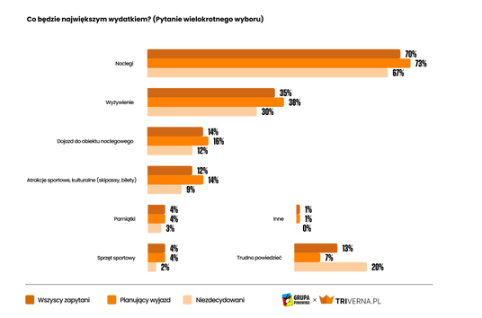 Relaks i wypoczynek oraz zwiedzanie to najczęstszy cel zimowych wyjazdów. Zaraz za nimi jest jazda na nartach i snowboardzie, którą wskazuje 23 procent respondentów. Rozwojowi tych form sportu sprzyjają inwestycje w stacjach narciarskich.