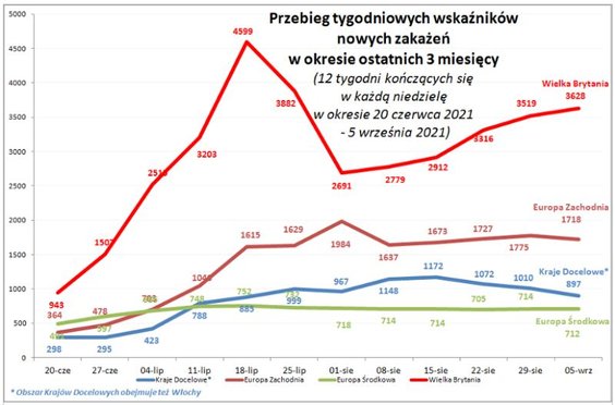Kolejny tydzień w Polsce utrzymywał się niezwykle niski poziom zakażeń koronawirusem, najniższy w Europie. Dla porównania - średni ważony tygodniowy wskaźnik zakażeń dla Unii Europejskiej w ostatnim tygodniu był 29-krotnie wyższy – przypomina na początku cotygodniowego materiału omawiającego sytuację epidemii prezes Instytutu Badań Rynku Turystycznego Andrzej Betlej.