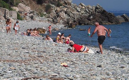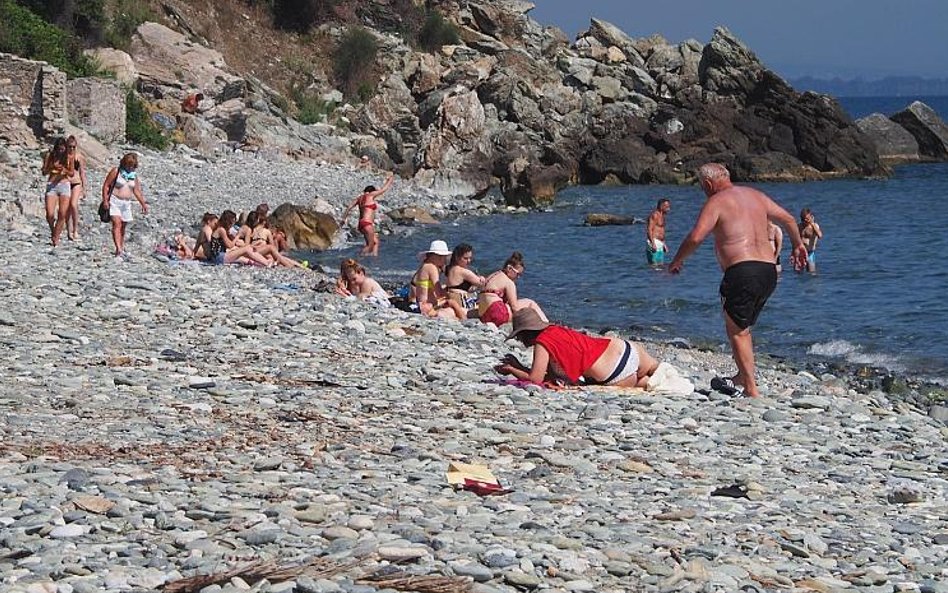 W drugiej części wioski, za kamiennym falochronem wychodzącym w morze, rozciąga się plaża żwirowa
